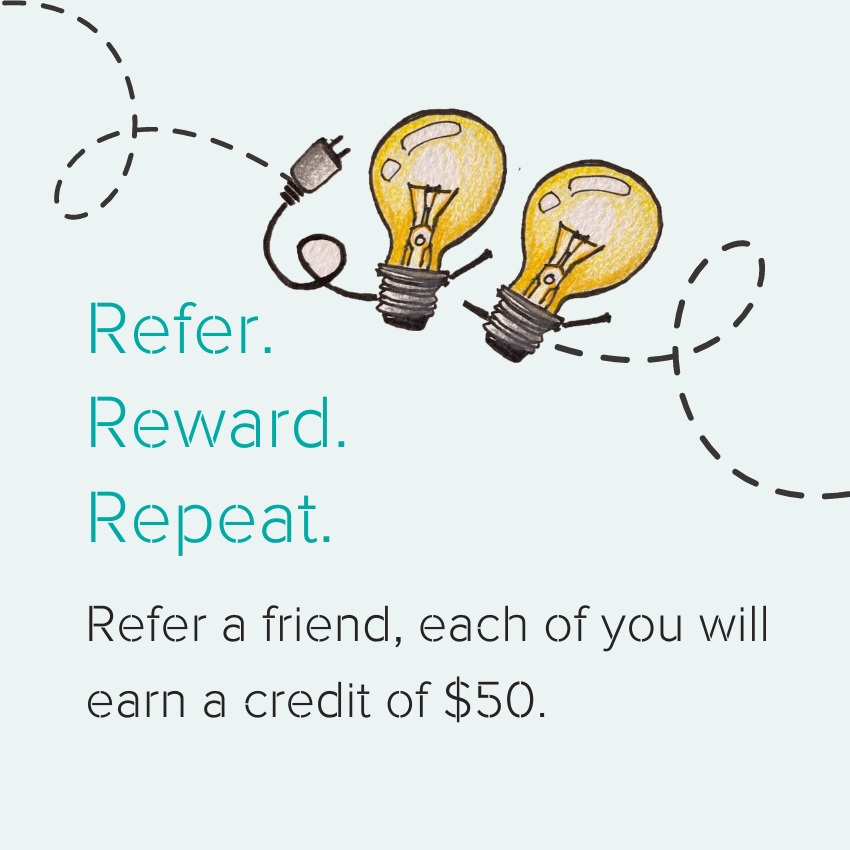 For every friend you refer to Future X Power, when they switch, you each score a  $50 credit. It's that easy.
